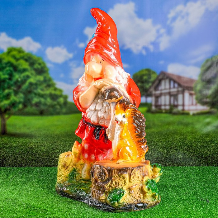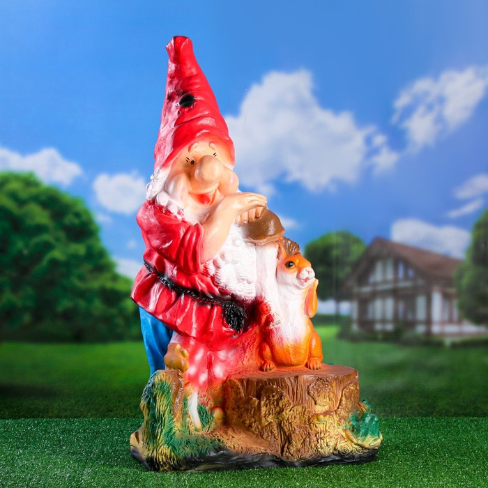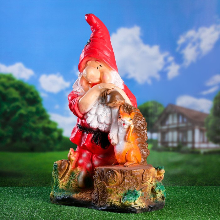 Садовая фигура "Гном с белкой" большая 20х40х75см