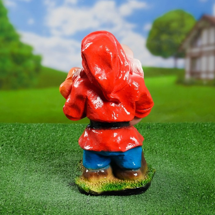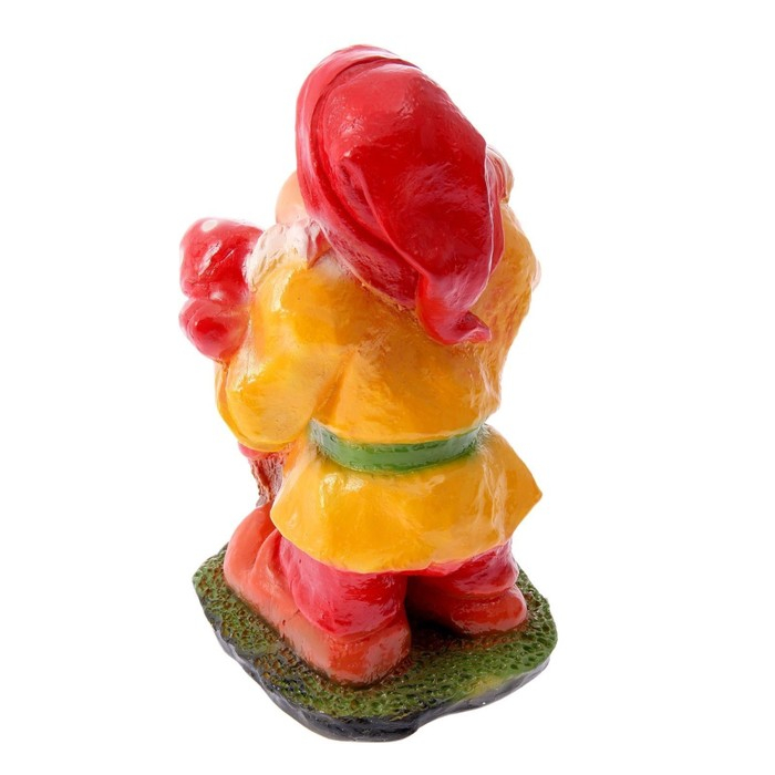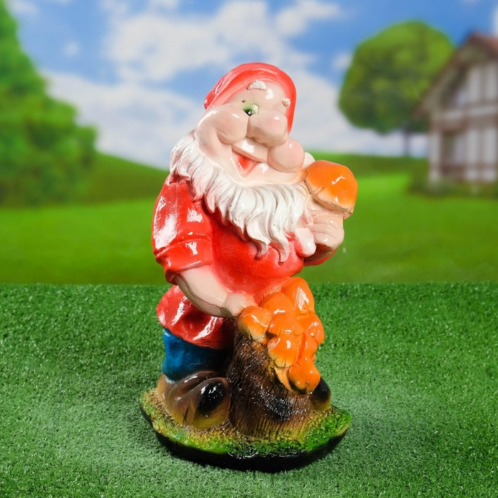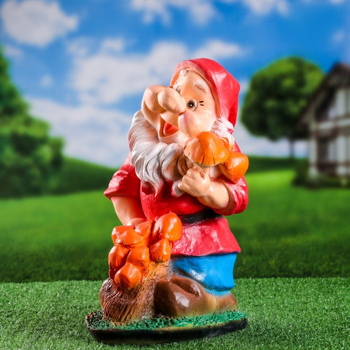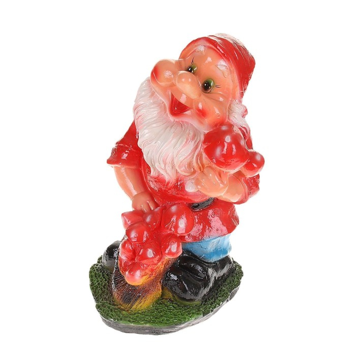 Садовая фигура "Гном с грибами" малая 23х21х39 см