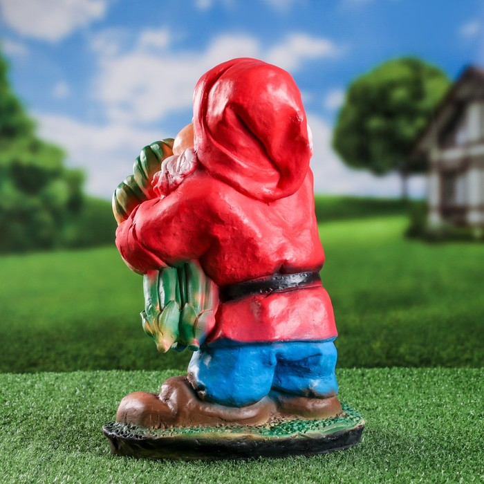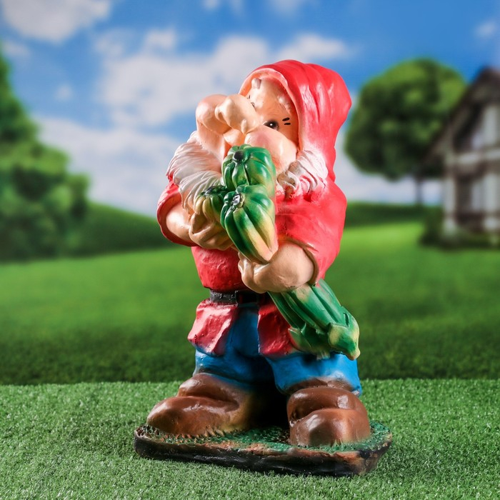 Садовая фигура "Гном с кабачками" красный, 23х21х36см