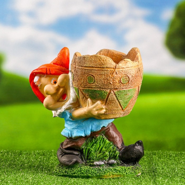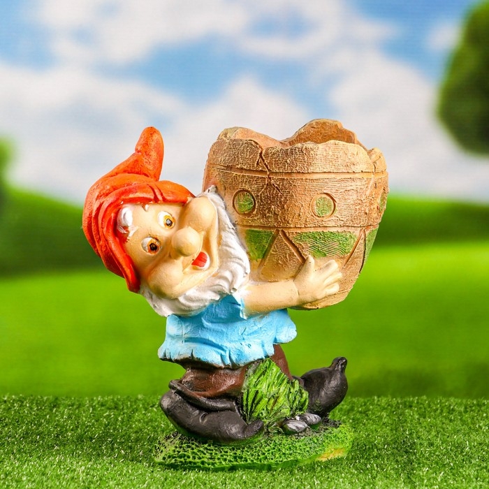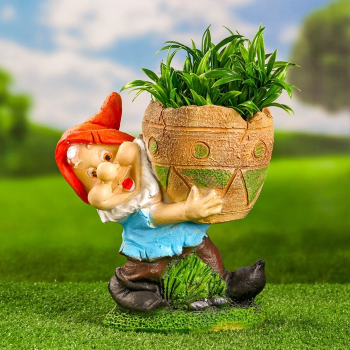 Садовая фигура "Гном с кашпо" 25х24см МИКС