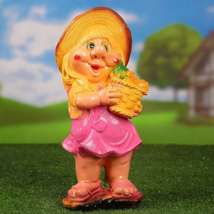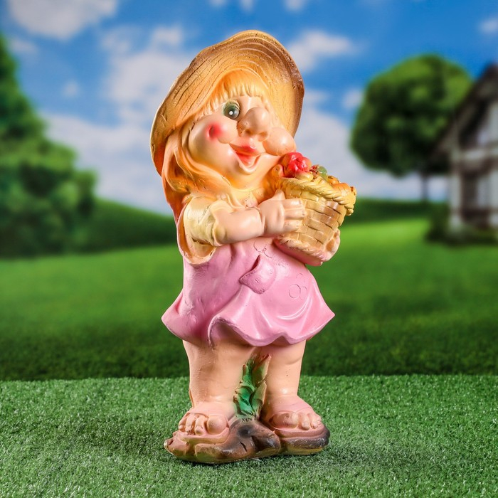 Садовая фигура "Гном с корзиной" малый 16х15х39см
