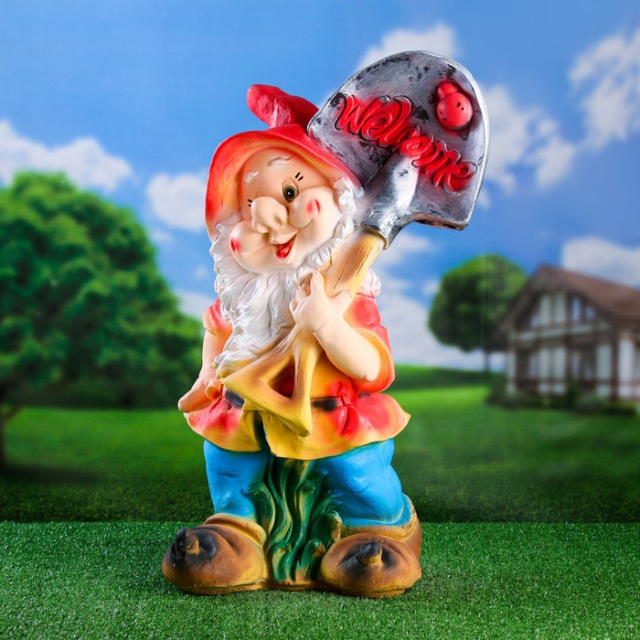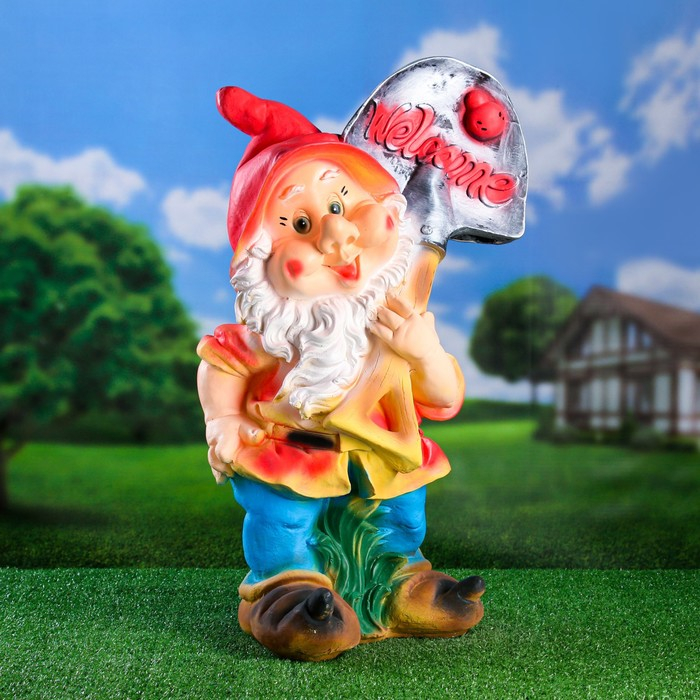 Садовая фигура "Гном с лопатой ВЕЛКОМ" 38х31х70см большой МИКС