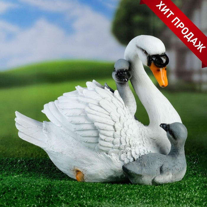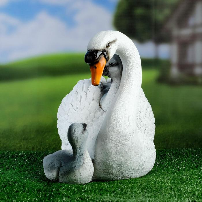 Садовая фигура "Лебедь с птенцами" 30х20х23см
