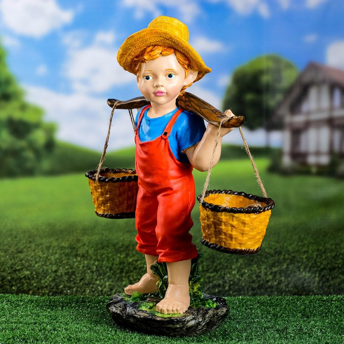 Садовая фигура "Мальчик с коромыслом" 48х40х19см