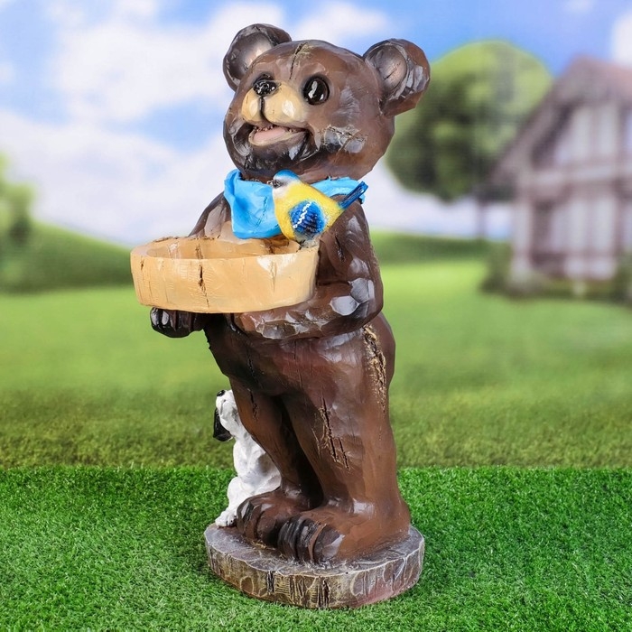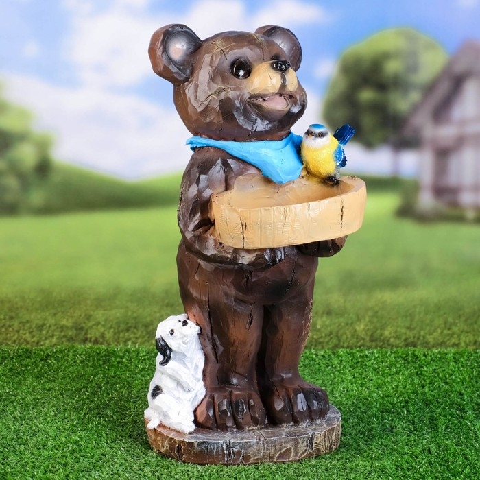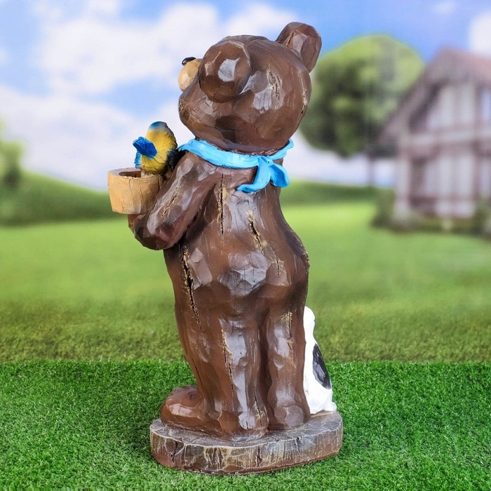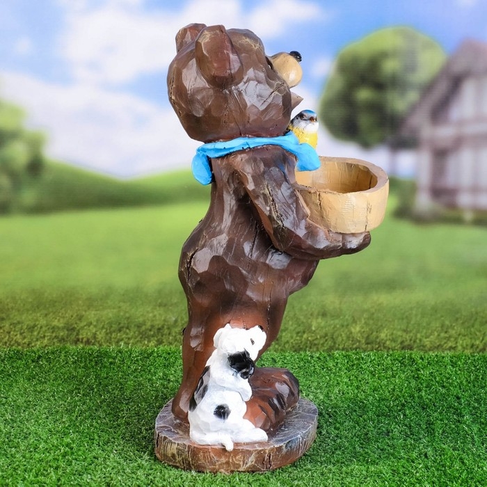 Садовая фигура - поилка "Медведь с птичкой" 42см