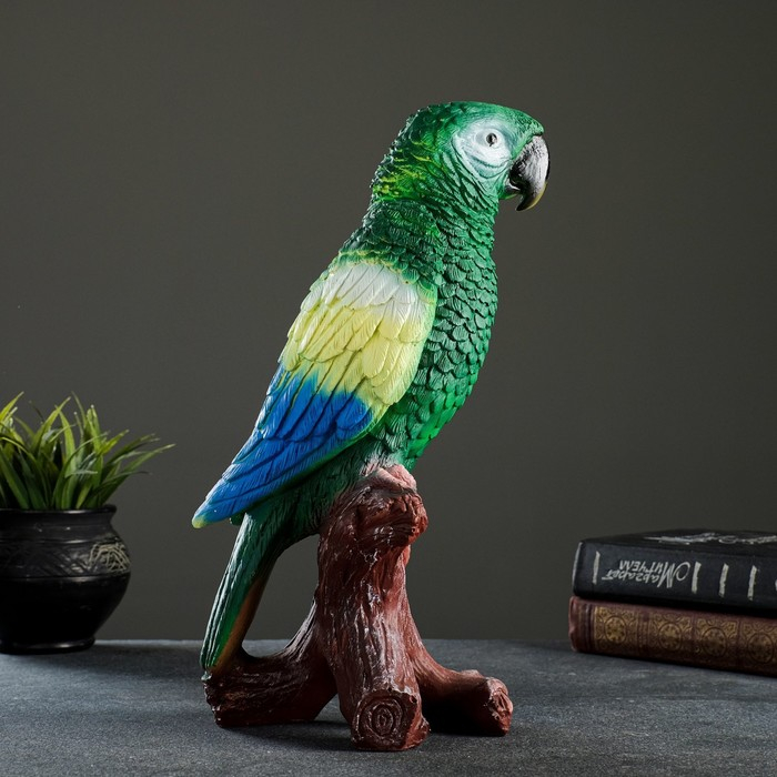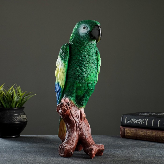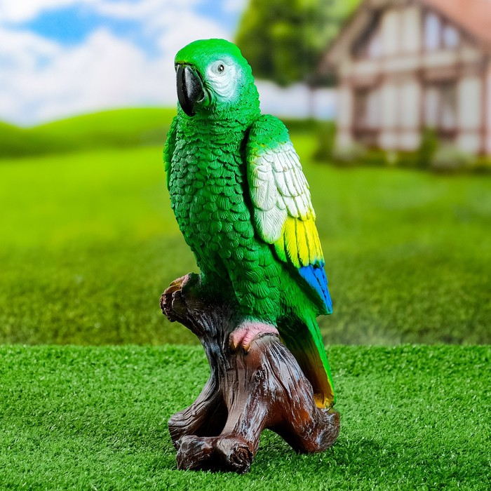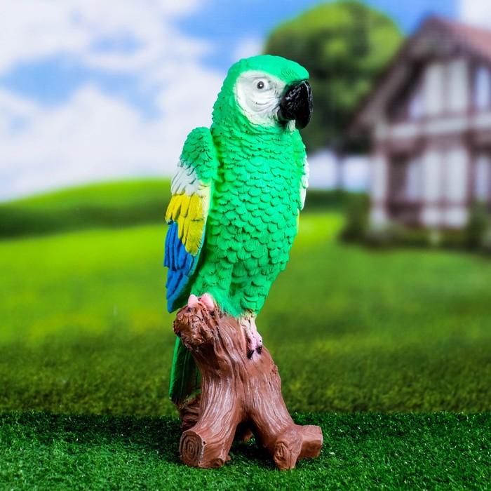 Садовая фигура "Попугай на коряге" 12х18х34см, зеленый