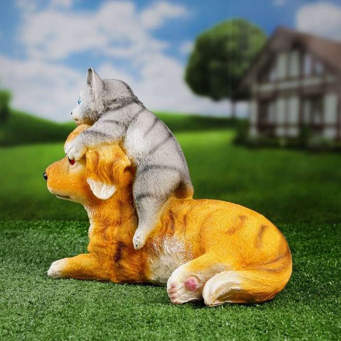 Садовая фигура "Щенок с котенком" 32х20х25см