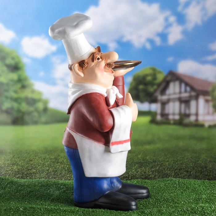 Садовая фигура "Шеф-повар с подносом" 15х36х62см