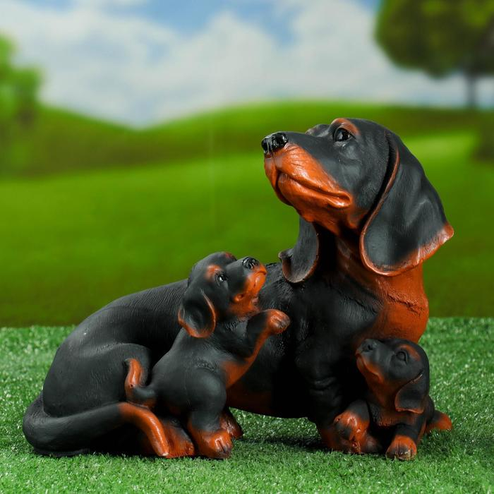 Садовая фигура "Собака Такса семья" 18х30х25см