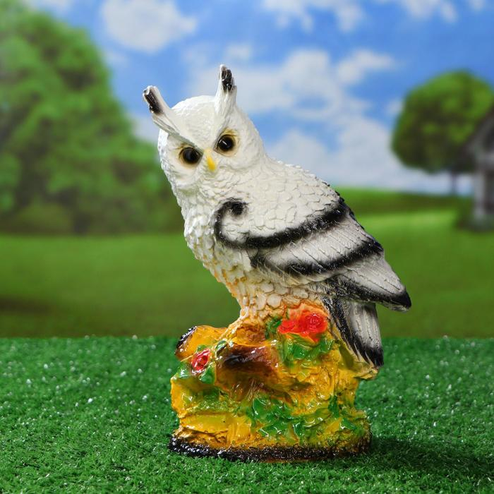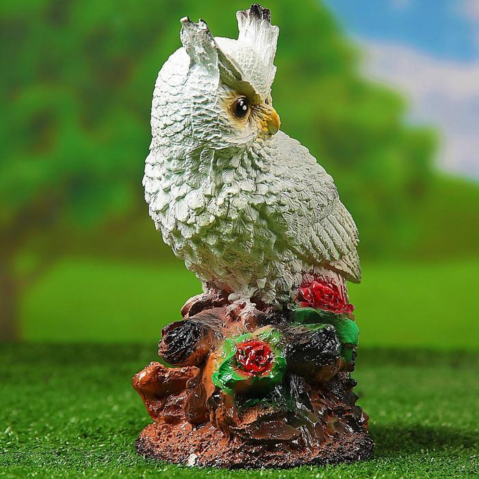 Садовая фигура "Сова с букетом роз" белая, 26см