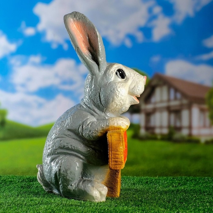 Садовая фигура из гипса «Зайчик с цветком», 20×10×10 см