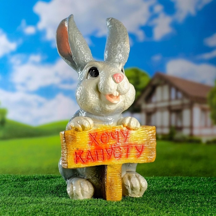 Садовая фигура "Заяц хочу капусту" 24х22х42см