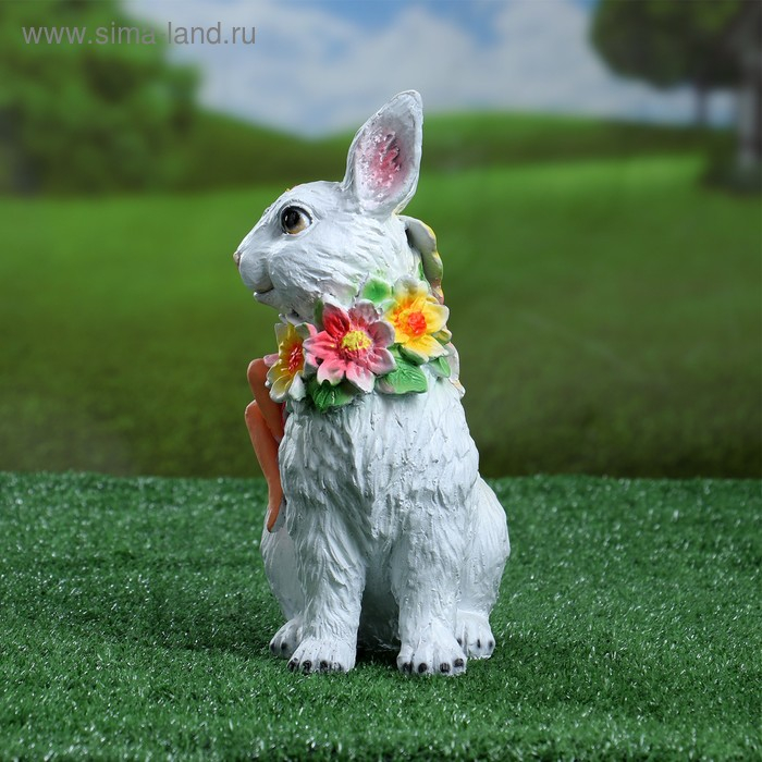 Садовая фигура из гипса «Зайчик с цветком», 20×10×10 см