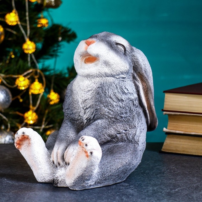 Садовая фигура "Зайка хохочет" серый, 20х18х22см