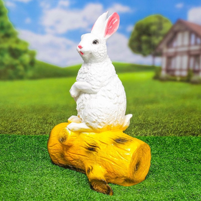 Садовая фигура "Зайка на бревне" белый, 45см