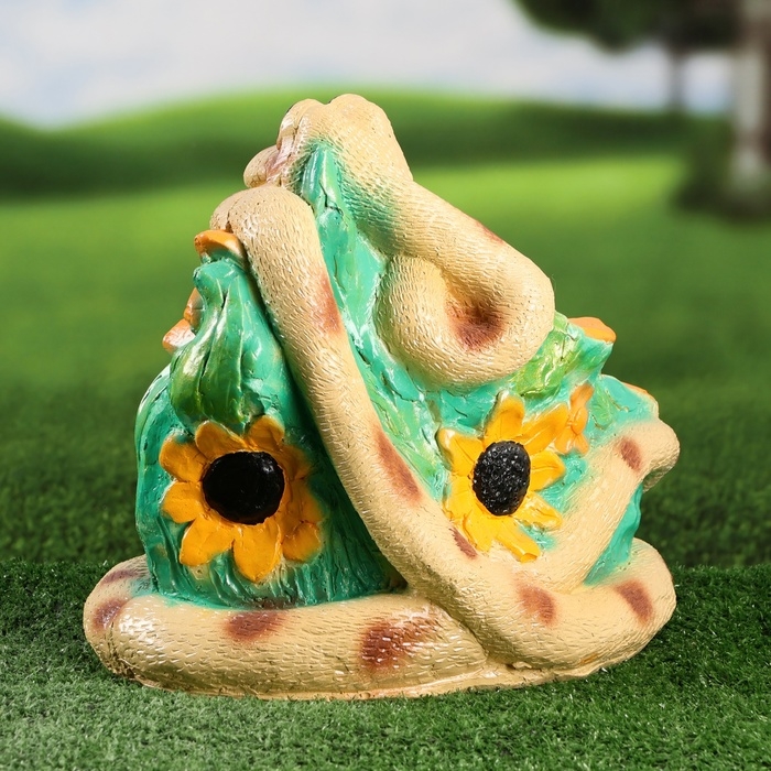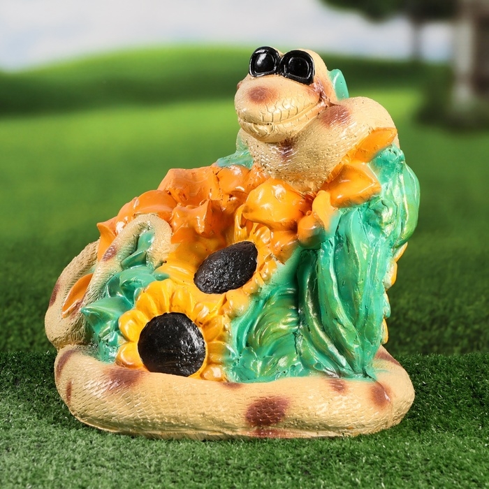 Садовая фигура "Змея с подсолнухами" зеленая, 26х30х25см