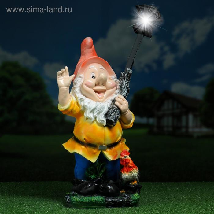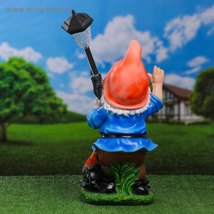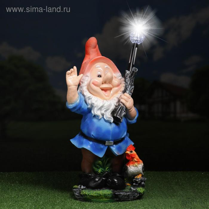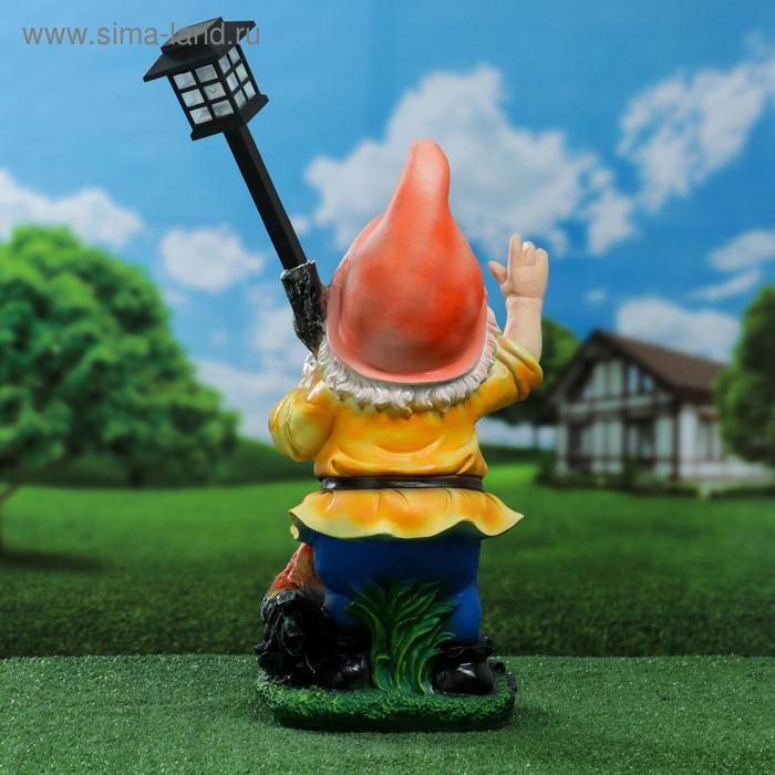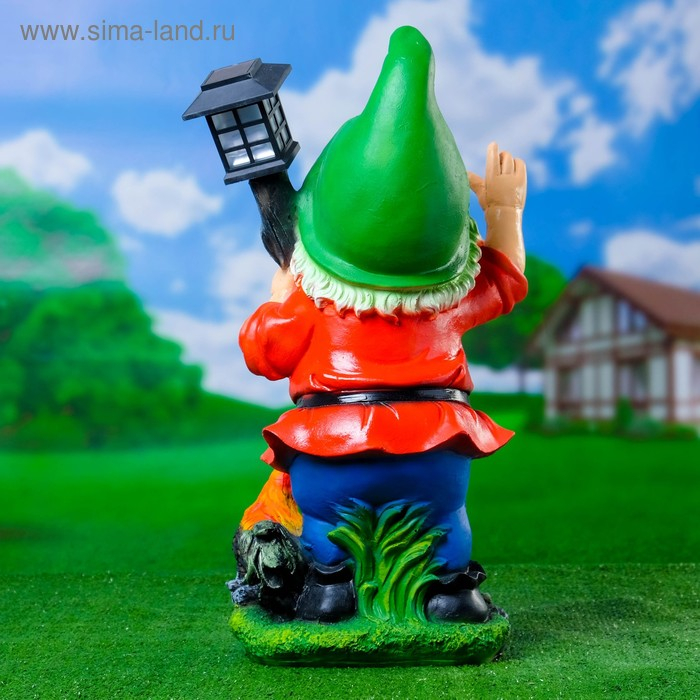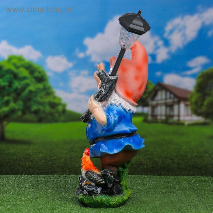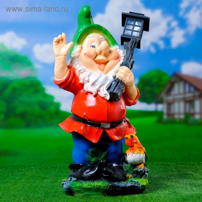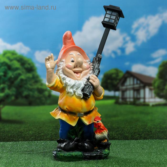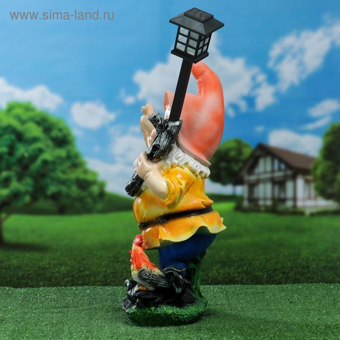 Садовый фонарь "Гном с фонарем и петухом" 31х23х56см