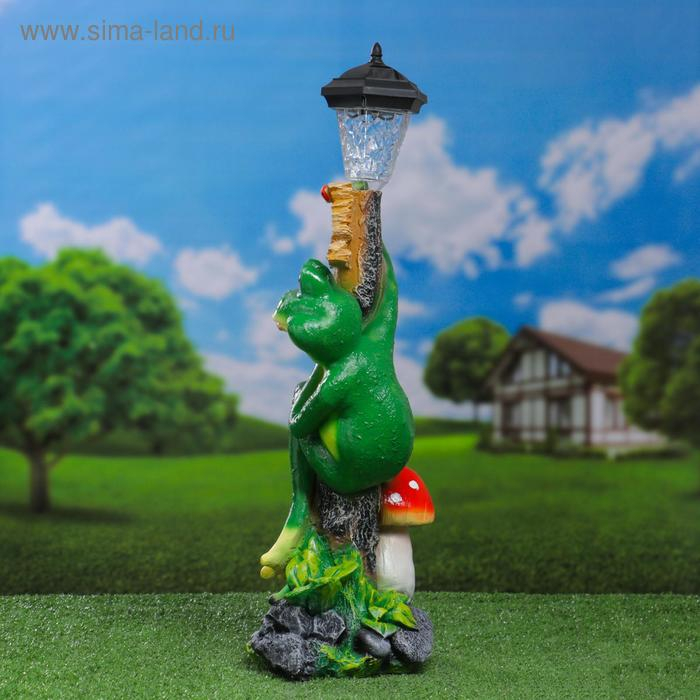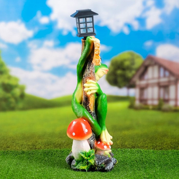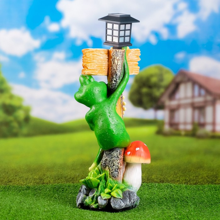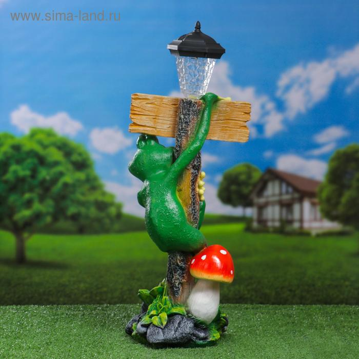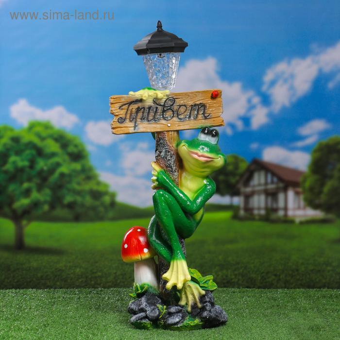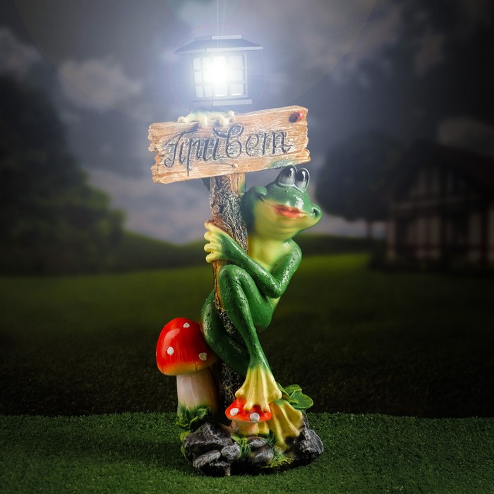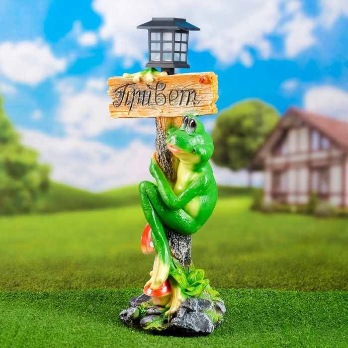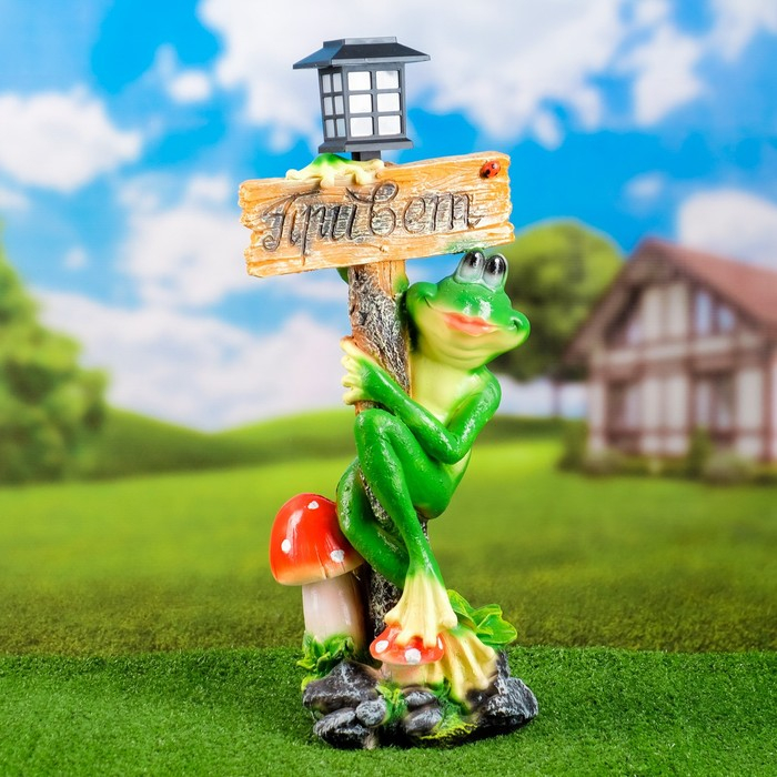 Садовый фонарь "Лягушка с фонарем и табличкой "Привет" 56х26см