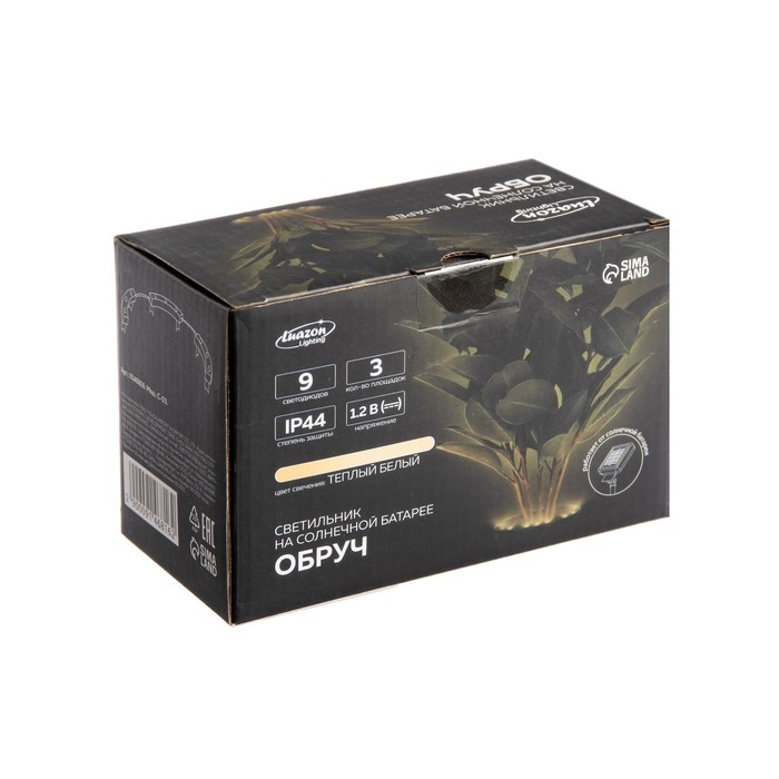 Садовый светильник на солнечной батарее «Обруч», 9 LED, свечение тёплое белое