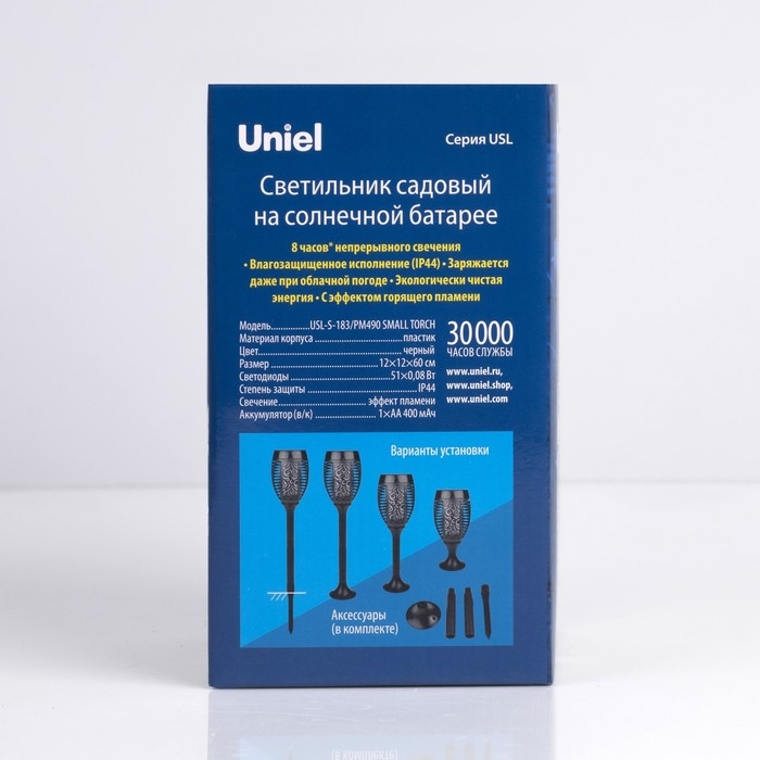 Садовый светильник Uniel на солнечной батарее «Факел», 12 × 50 × 12 см, эффект пламени