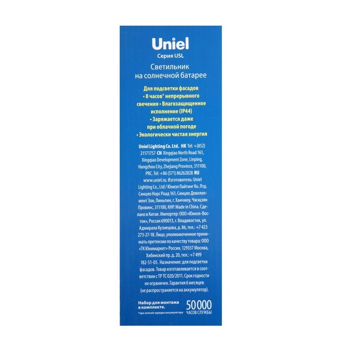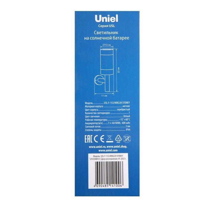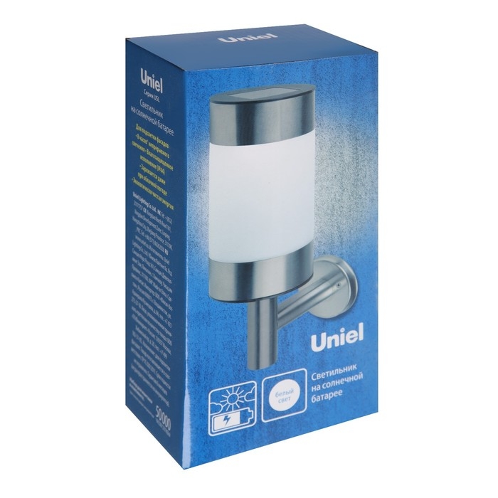 Садовый светильник Uniel Sydney на солнечной батарее, 7.5 × 22 × 11 см, свечение белое