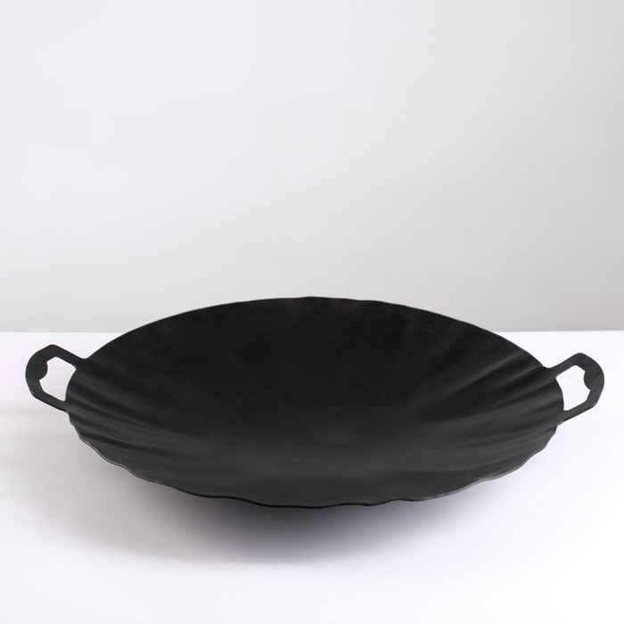 Садж из воронёной* листовой стали с цельновырезными ручками, диаметр 40 см, толщина стали 2 мм, вес 2 кг