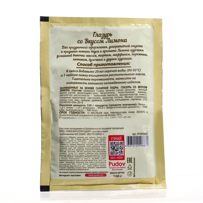 Сахарная глазурь «С. Пудовъ», со вкусом лимона, 100 г
