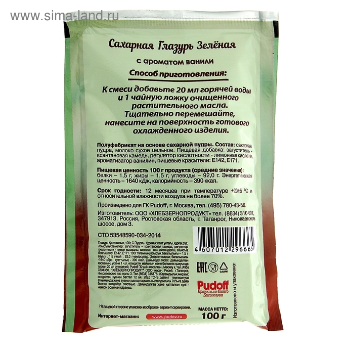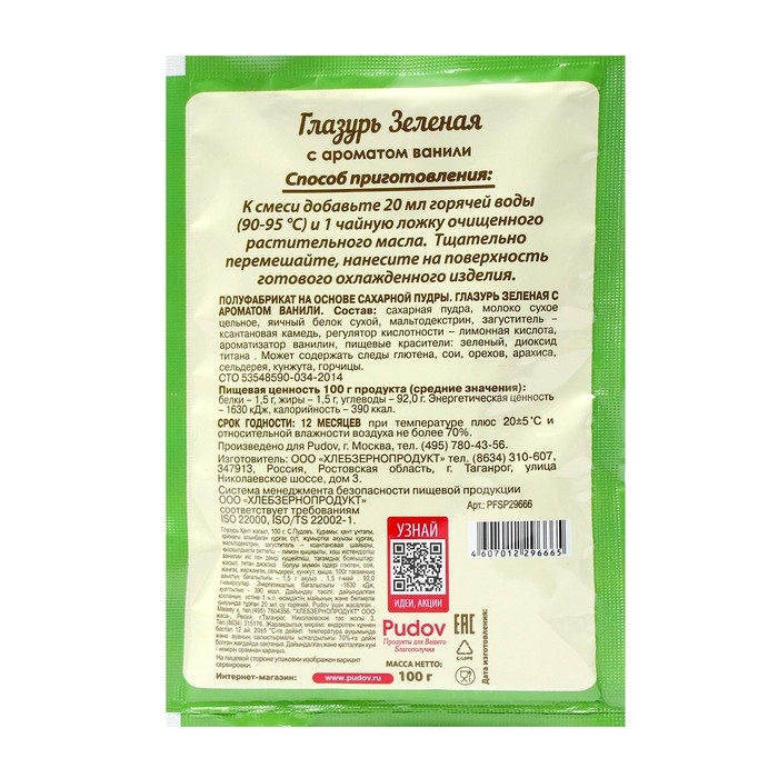 Сахарная глазурь «С. Пудовъ», зелёная, 100 г