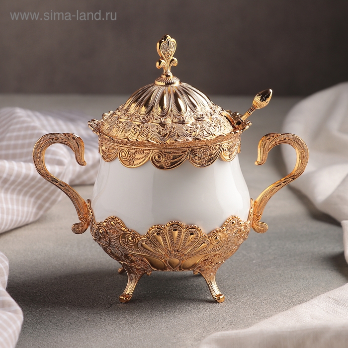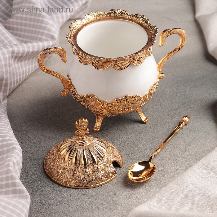 Сахарница «Бахмал», 16×9×15 см, с ложкой, цвет металла золотой
