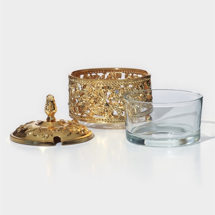 Сахарница «Букет», 200 мл, 10×11 см, с ложкой, крышкой, цвет золотой