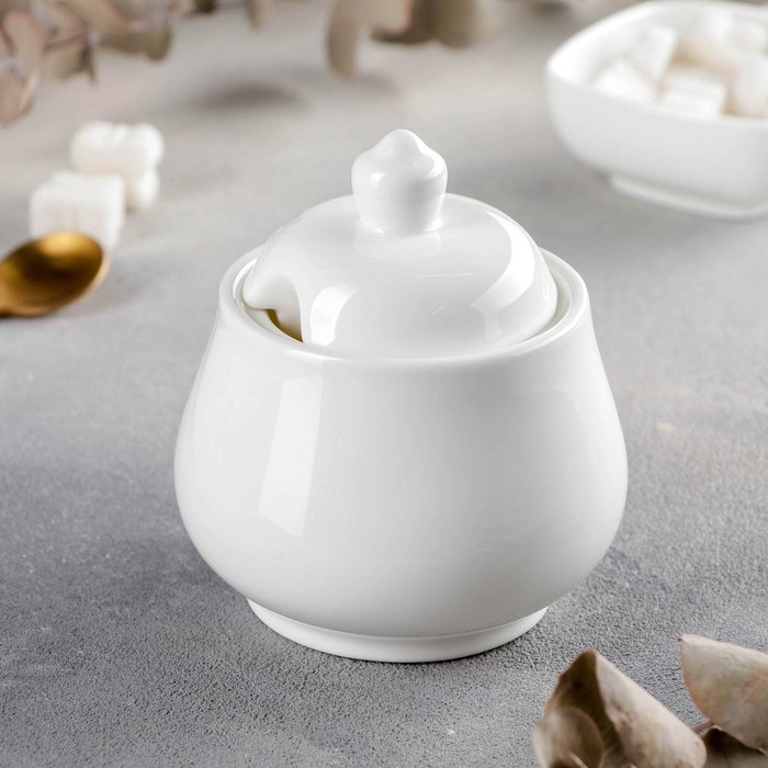 Сахарница фарфоровая с крышкой Wilmax, 340 мл, цвет белый