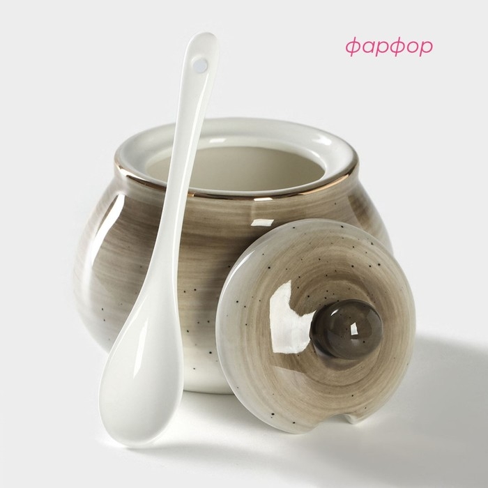 Сахарница фарфоровая с ложкой Доляна «Млечный путь», 330 мл, цвет серый
