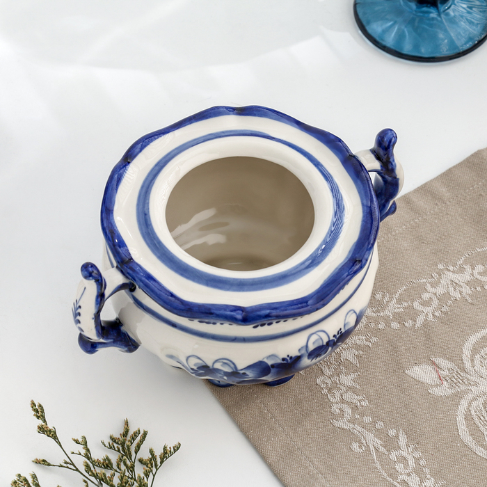 Сахарница, гжель, фарфор, автор Рогова, 13х17 см