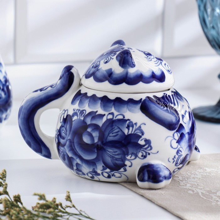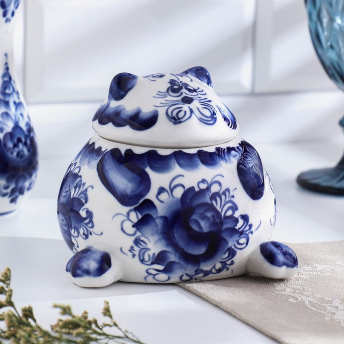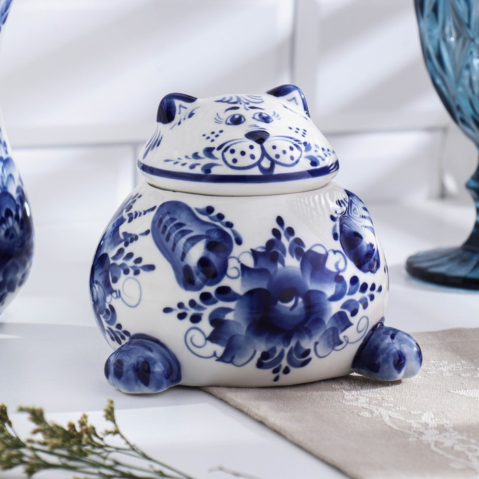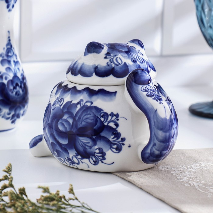 Сахарница «Кот», гжель