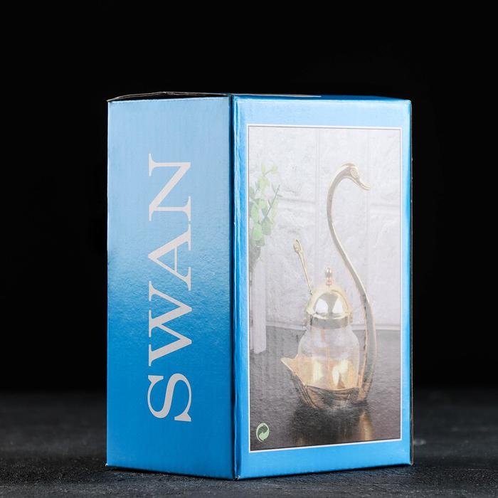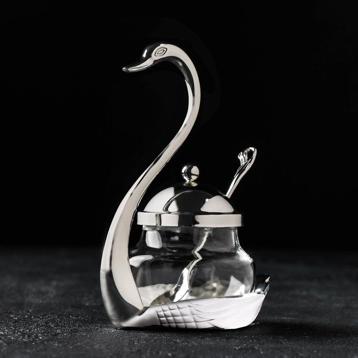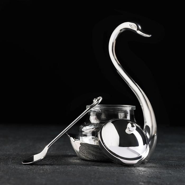 Сахарница «Лебедь», 150 мл, 11,5×8×16 см, с ложкой, цвет металла серебряный