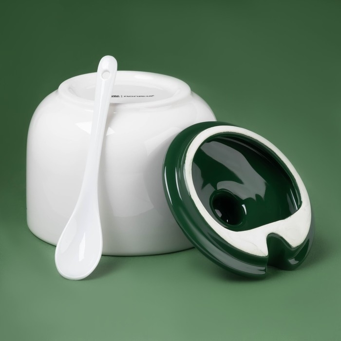 Сахарница фарфоровая с ложкой на бамбуковой подставке BellaTenero, 140 мл, цвет белый