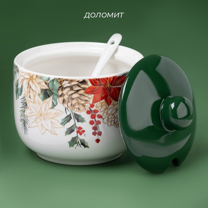 Сахарница новогодняя Доляна «Рождественский вечер», 550 мл, керамика, цвет белый