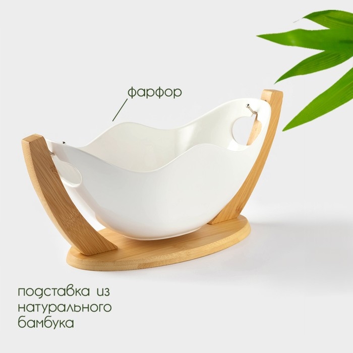 Салатник фарфоровый на бамбуковой подставке BellaTenero, 800 мл, цвет белый