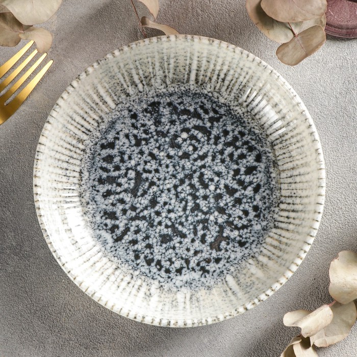Iris blue сочетает нежно-голубой фон и синие вкрапления в центре. Посуда поможет создать впечатляющую сервировку с эффектом глубины.
