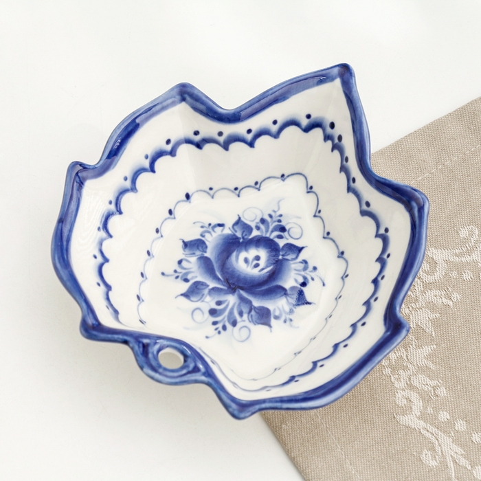 Салатник "Клиновый лист", 15 х 14 х 4 см, гжель, кобальт