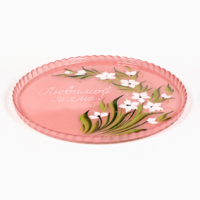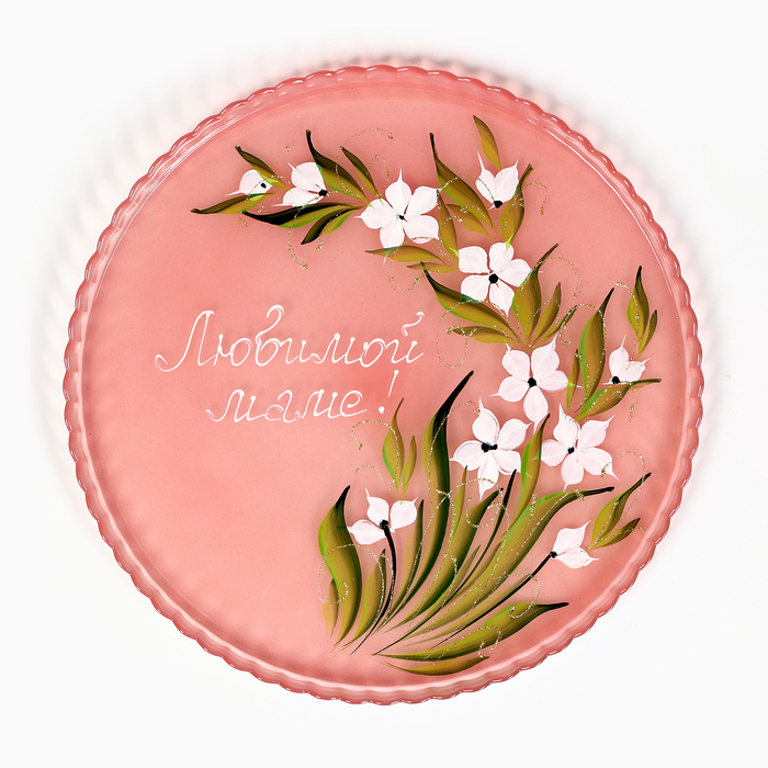 Салатник "Любимой маме!" художественная роспись, 28 см, красный