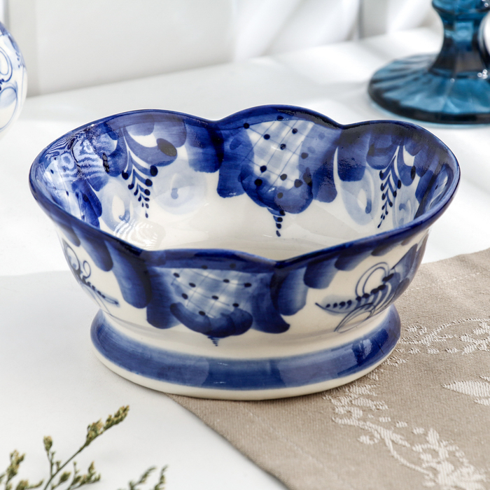 Салатник "Ромашка", гжель, фарфор, 6х15 см