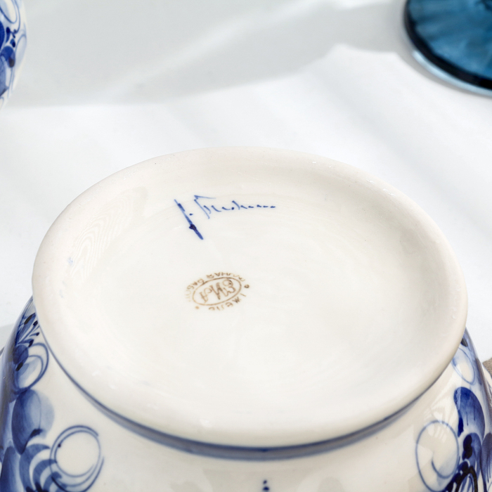Так появился узнаваемый стиль гжели — синяя пейзажная и растительная роспись, которая соединяется с геометрическим орнаментом на белоснежном фоне. Мастера расписывают каждый предмет только вручную.
