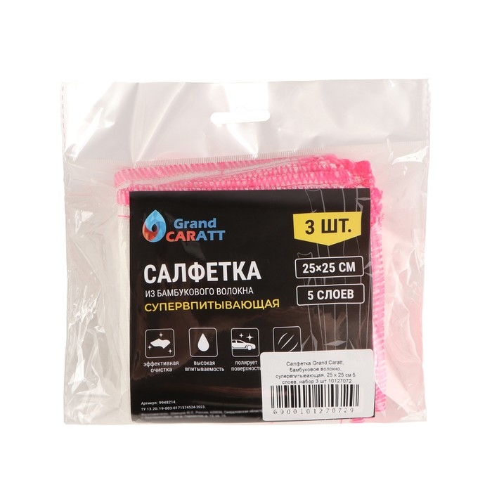 Салфетка Grand Caratt, бамбуковое волокно, супервпитывающая, 25 х 25 см 5 слоев, набор 3 шт