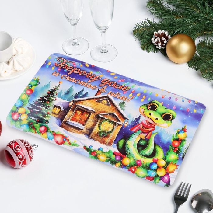 Салфетка новогодняя декоративная "Берегу дом и счастье в нём! 2025" символ года