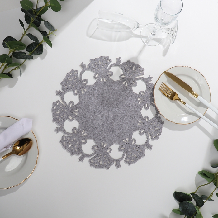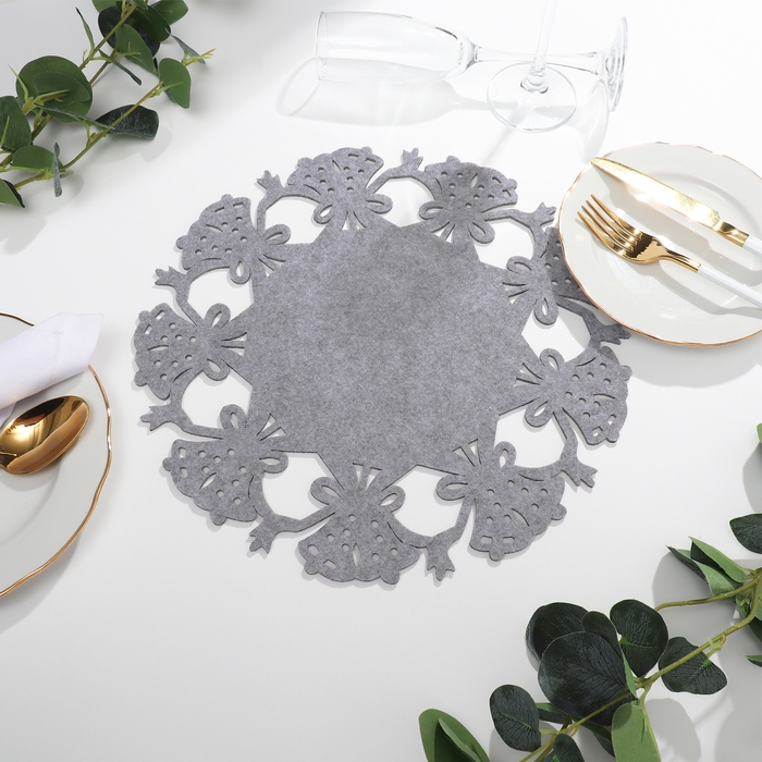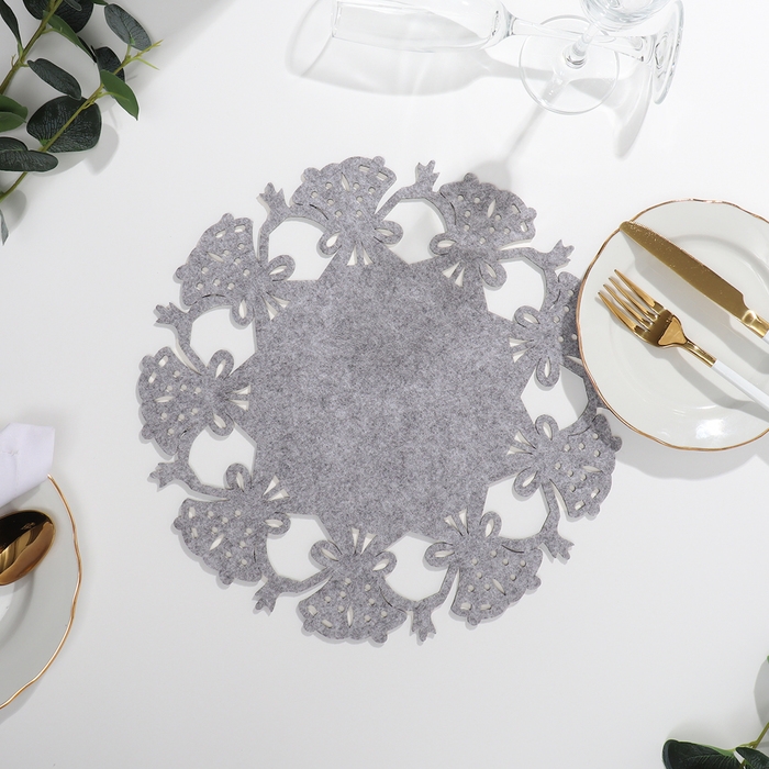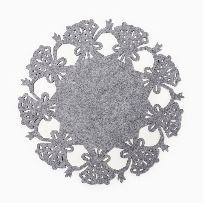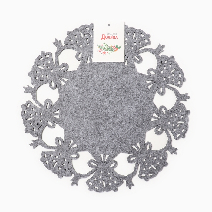 Салфетка новогодняя декоративная Доляна «Колокольчики», цвет серый, d 30 см, фетр