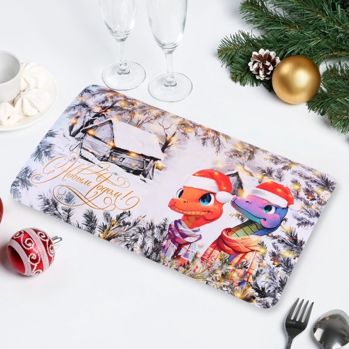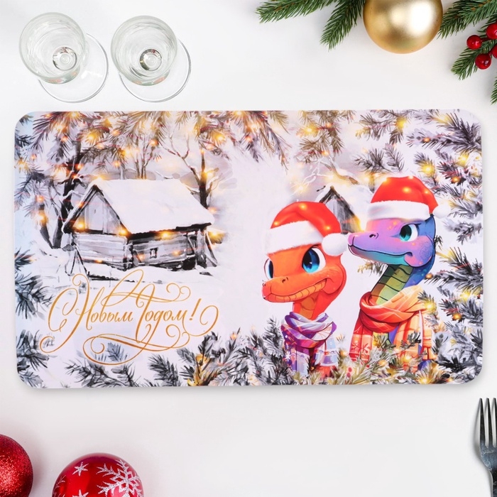 Салфетка новогодняя декоративная "С Новым Годом! 2025" символ года, домик