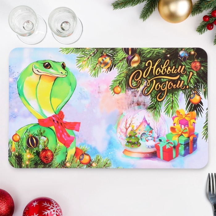 Салфетка новогодняя декоративная "С Новым Годом! 2025" символ года, шар