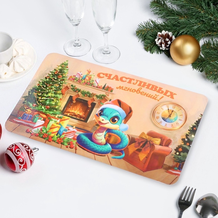 Салфетка новогодняя декоративная "Счастливых мгновений! 2025" символ года