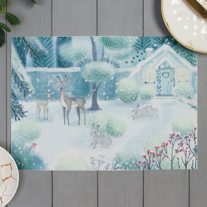 Салфетка новогодняя на стол Доляна «Новогодний лес», 40х29см